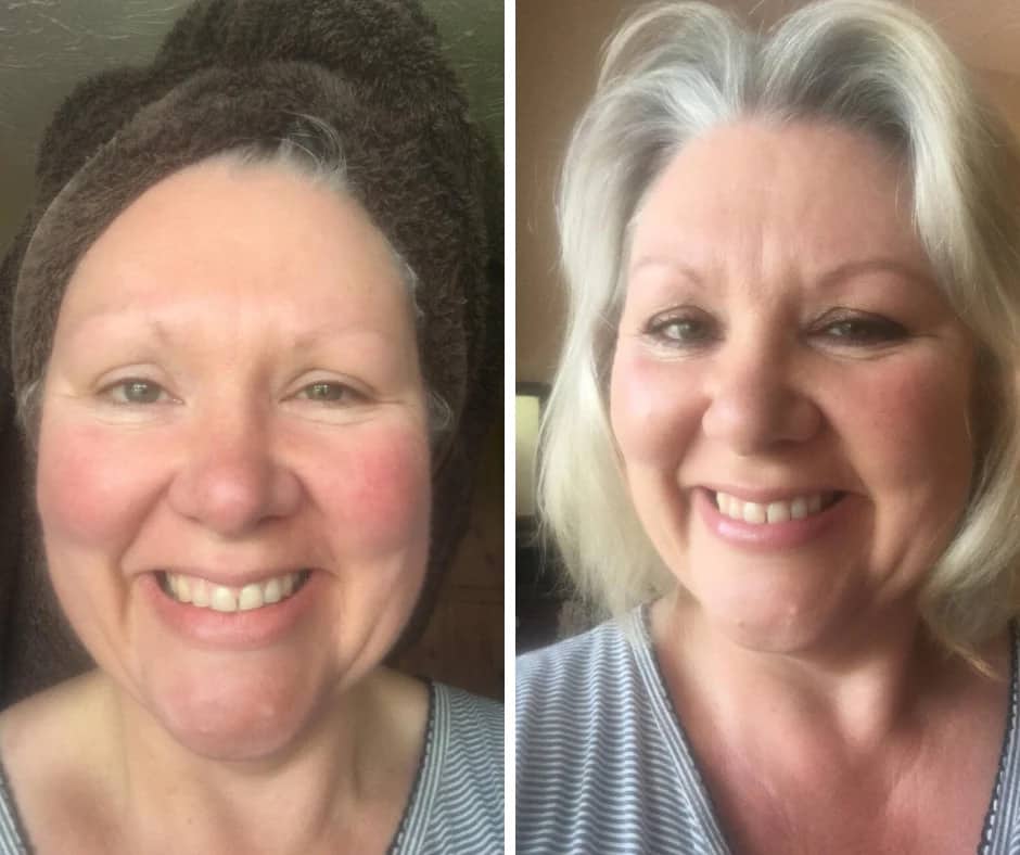 Mijn wangen en neus zijn altijd rood en Rosalique zorgt ervoor dat het die roodheid meteen bedekt. Rosalique is groen, maar wanneer dat verandert in een huidskleur en zorgt ervoor dat je een mooie foundationachtige finish krijgt. Mijn huid ziet er veel minder rood uit, bijna perfect!